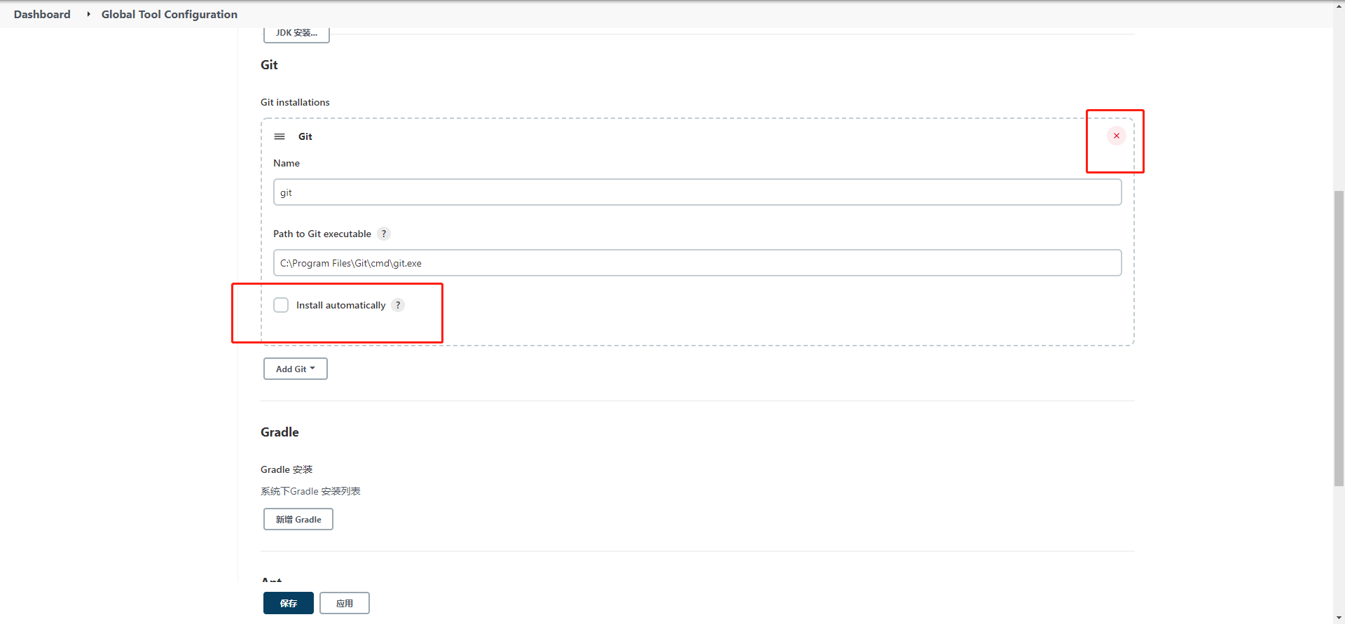 如图所示,你可以选择让jenkins为你安装git,也可以配置机器上已安装好的git,jdk和maven同理。