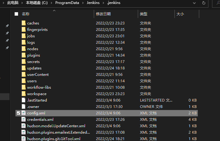 然后在该文件夹下找到对应的配置文件 config.xml:
