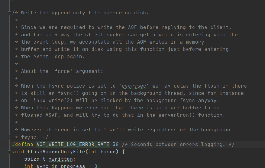 我们看一下flushAppendOnlyFile的注释: