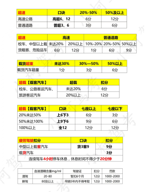 准驾车型不符,挡车牌,高速停车,客车超速50-100,未取得资格驾驶校车。