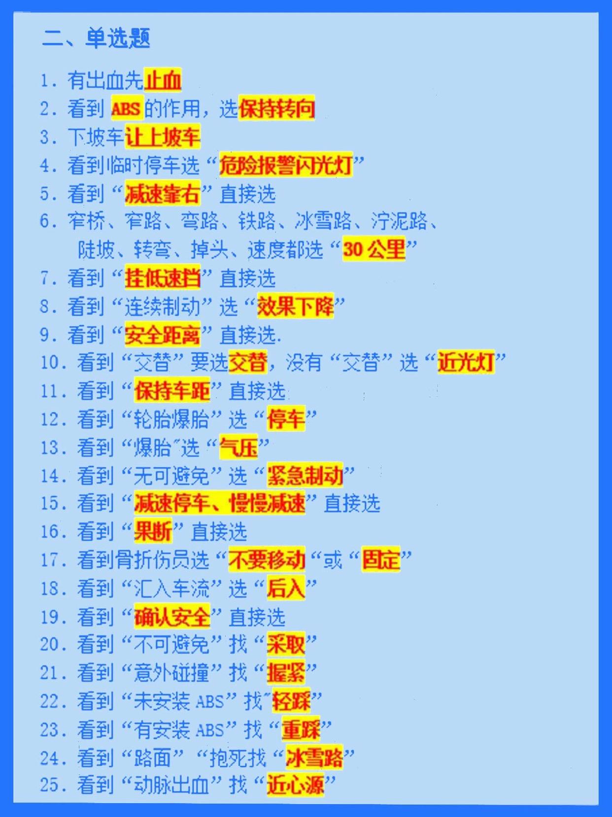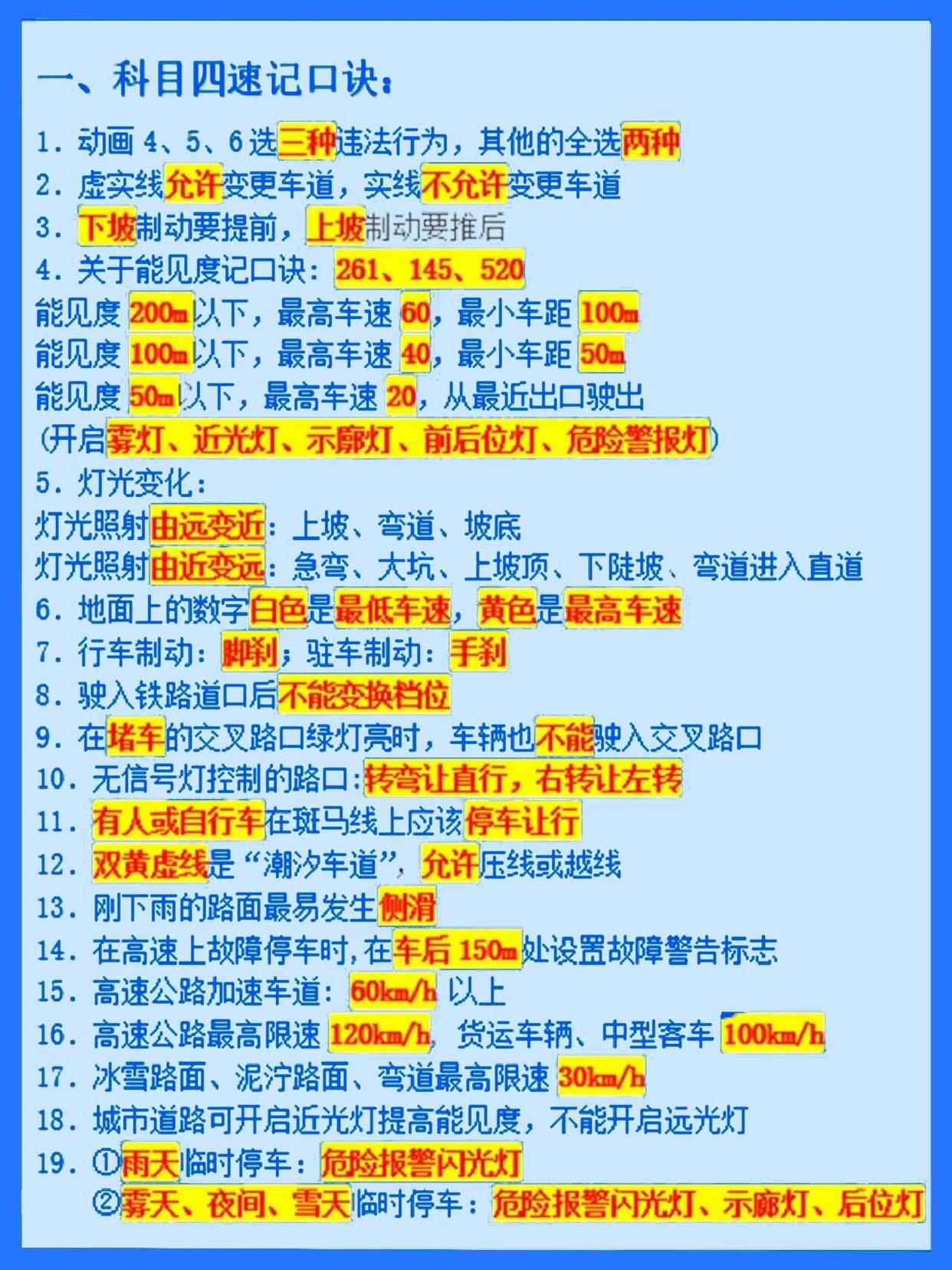 - 高速公路,山区道路,桥梁,隧道,夜间等条件下的安全驾驶知识